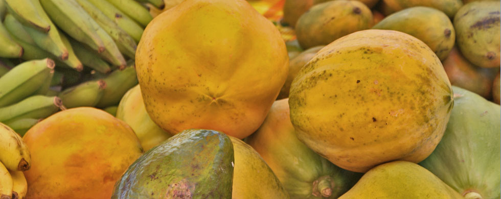 At the local markets you find tropical fruits such as limes, pineapples, mangos, papayas, passion fruits, bananas and many more.